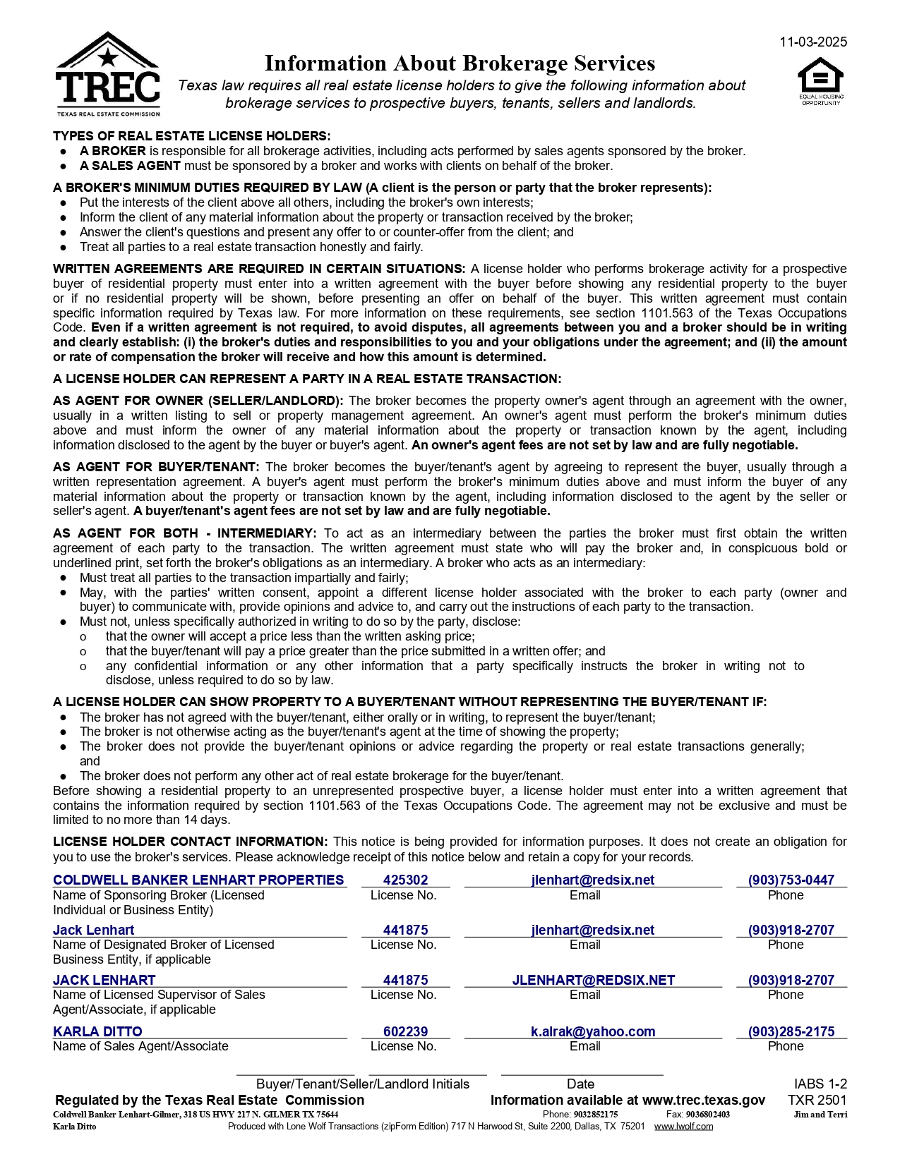 INFORMATION ABOUT BROKERAGE SERVICES